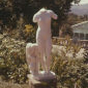 Statue on a pedestal in a garden at Hearst Castle.
