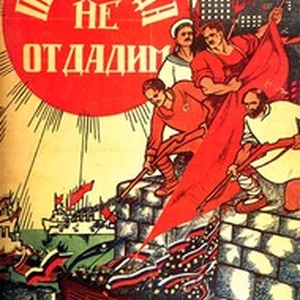 A poster agitating to defend Petrograd (St. Petersburg / Leningrad) during the Russian Civil War. Caption reads, "Petrograd ne otdadim / Петроград на отдадим", meaning, "We will not give up Petrograd". [Description English/roman)]