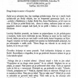 Bilten Kristove pentekostalne crkve u Ljubljani. Broj iz 1995. godine koji sadrži kratak uvodnik, a zatim izvješća o tome što se događalo u crkvi tijekom 1995. godine. [Description (original non-English/roman language/script)]