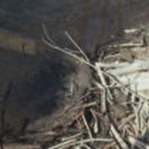 Freshly worked on beaver dam covered with mud. Found in Cajon Creek located by the Blue Cut rest area.