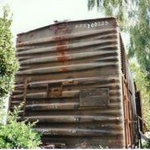 Photo--color: P&SR (Petaluma and Santa Rosa) railroad box car put in place behind the Sebastopol P&SR railroad depot that has become the West County Museum run by the Western Sonoma County Historical Society.