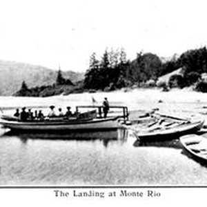 Print--black and white: Postcard booklet photos of Monte Rio on the Russian River, California circa 1900s. Caption: The Landing at Monte Rio.