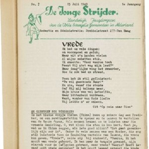 De jonge strijder : Pinkstermaandblad voor jeugdwerk en zondagsschool, vol. 01, nr. 07 (1949 juli) The young warrior : Pentecostal monthly voor youth work and Sunday schools, vol. 01, no. 07 (1949 July)