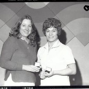 Photo--black and white: Palm Drive Hospital service awards, 1984. Two unidentified staff.