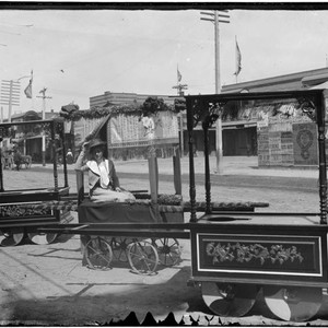 Image includes advertising poster for Florence Roberts in "Zaza" at Morosco's Burbank Theater. An article in the Los Angeles Herald, April 27, 1903, says "Zaza" first played at that theater beginning in 1902. An advertisement for Levi, Strauss & Co., San Francisco, also appears in the image. [Identification of item]. Lisa See collection. The Huntington Library, San Marino, California.