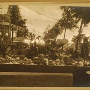Photo--black and white, mounted photo of apple display of D. V. Toffelmeir at the Gravenstein Apple Show, about 1915. Photographed by Clench of Sebastopol.