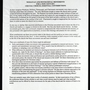 Call for papers for the Joint Meeting of the Wesleyan Theological Society & the Society for Pentecostal Studies (2003 March 20-22), before 2002 August 1. [Description English/roman)]
