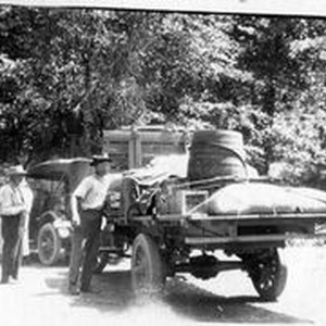 A vintage truck part of the Riddell family's road trip on Skaggs Road probably to Stewarts Point on the northern California coast. Circa 1920.