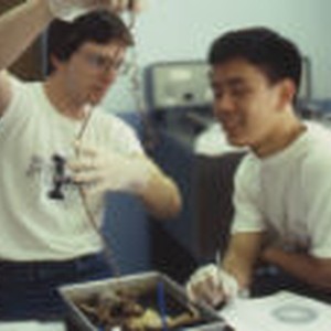 Two students dissecting a rat in Biology 51 class.