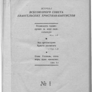 In 1945, The United Union of Evangelical Christians (EC) and Evangelical Christian Baptists (ECB) published the first issue of the Brotherly Herland. Iakov Ivanovich Zhydkov, chairman of the national (USSR) Union of Evangelical Christians and Baptists, became the chief editor. The editorial committee consisted of M.I. Golyaev, M.A. Orlov, and Alexander Vasi'yevich Karev. The leadership of the NUECB (all-National Union of Evangelical Christian Baptists) set the main task of the journal to form "Unity" in the midst of protestant churches of the moderate type. Thus, in the preface of the first issue of the journal it was stated, "The task of the Brotherly Herald is to work in such a way that unity might penetrate the bodies and blood of all brothers and sisters and become indestructible even going through tests and difficulties. May the Lord Himself make one united nation of two movements in His Name. Our mottos are the words from the Holy Scripture, they are dear to our hearts, 'We preach Christ crucified' (1 Cor. 1:23), 'Stand firm in one spirit, contending as one man for the faith of the gospel' (Phil. 1:27), 'One Lord, one faith, one baptism' (Eph. 4:5)". ❧ The second purpose of the periodical (which was to be published every other month) was to inculcate "correct training" of church members (correct from the spiritual as well as civic points of view). This purpose was successfully fulfilled by publication of texts of sermons, spiritually-edifying articles, official appeals and reports. The journal consisted of the following contents: 1. Religious and patriotic Evangelical Christians and Baptists and the Motherland. 2. Sermons and spiritual articles. 3. From history of the Evangelical Baptist movement in USSR. 4. From history of Christianity. 5. Biographies and necrologies of Evangelical Christians and Baptists. 6. Life and activity of NUECB. ❧ The address of the editorial office was in Moscow, Pokrovsky Boulevard, Maliy Vuzovsky Lane, 3. [Description English/roman)] В 1945 году объединенный союз ЕХ и ЕХБ издал первый номер периодического издания «Братский Вестник», главным редактором стал председатель Всесоюзного Совета евангельских христиан и баптистов Я.Жидков. В редакционную комиссию вошли Голяев М.И., Орлов М.А., Карев А.В. Основной задачей журнала руководство ВСЕХБ видело в формировании «Единства» среди протестантских церквей умеренного типа. Так в предисловии к первому номеру журнала писалось: Задача «Братского вестника» - так повести свою работу, чтобы дело единения вошло, в плоть и кровь всех братьев и сестер, чтобы оно стало нерушимым даже при испытаниях и трудностях, и чтобы теперь уже Сам Господь соделал из двух течений один народ во имя Свое. Нашими лозунгами являются дорогие всем нам слова Св. Писания: ‹Мы проповедуем Христа распятого› (1 Кор. 1, 23) ‹Стойте в одном духе, подвизаясь единодушно за веру евангельскую› (Фил. I, 27) ‹Один Господь, одна вера, одно крещение› (Ефес. 4, 5)». ❧ Вторая цель этого периодического издания которое планировалось издавать один раз в два месяца было прививать «правильное воспитание» членов церкви «как с духовной, так и с гражданской точки зрения» . Данная задача достаточно успешно выполнялась посредством публикации проповедей, духовно-назидательных статей, официальных обращений и отчётов. Журнал состоял из следующих рубрик: 1. Религиозно-патриотический Евангельские Христиане и Баптисты и родина. 2. Проповеди и духовные статьи. 3. Из истории Евангельско-Баптистского движения в СССР. 4. Из истории Христианства. 5. Биографии и некрологи Евангельских Христиан и Баптистов. 6. Жизнь и деятельность ВСЕХИБ. 7. Жизнь общин на местах. 8. Корреспонденция. ❧ Адрес редакции находился в г. Москве, Покровский бульвар, Малый Вузовский пер., дом. 3." [Description (original non-English/roman language/script)]