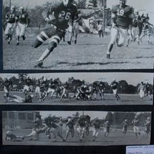 Photo--black and white: Analy High School Tigers football 1947. Three photos of daytime football game with Fort Bragg on September 27, 1947. Identified players are: Perry, Darrell (26) Garrison, Jack (27) Parmeter, Mike (4) Briggs, Ernie (17) Case, Elvin (Casey) (25) Garcia, Dick (21) Schiedecker, Bill (29) Wolfe, Dick (1) Groves, George (8).