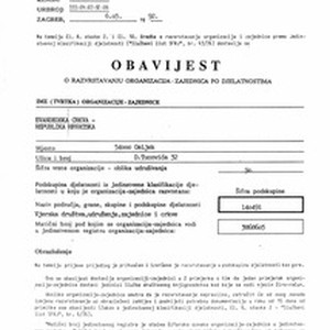 A document by Croatian Statistical Institute about the classification of the Evangelical Pentecostal Church in Croatia. [Description English/roman)] Dokument obavijesti Republičkog zavoda za statistiku o klasifikaciji Evanđeoske crkve u Hrvatskoj. [Description (original non-English/roman language/script)]