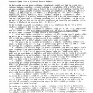Circular letter to all the pastors in Pentecostal churches in Slovenia about a certain issue in the Union of the Pentecostal churches. [Description English/roman)] Okružno pismo svim pastorima pentekostalnih crkava u Sloveniji o određenom problemu koji se pojavio u Savezu pentekostalnih crkava. [Description (original non-English/roman language/script)]
